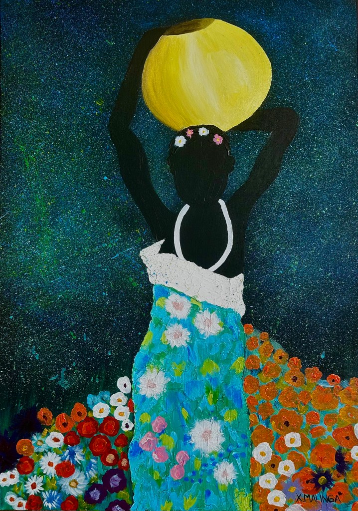 Malinga’s work examines notions of beauty, freedom, and self-acceptance within the context of African womanhood, challenging inherited perceptions shaped by colonialism and contemporary media. Each piece becomes a meditation on reclamation — redefining how African women see themselves and are seen by the world.